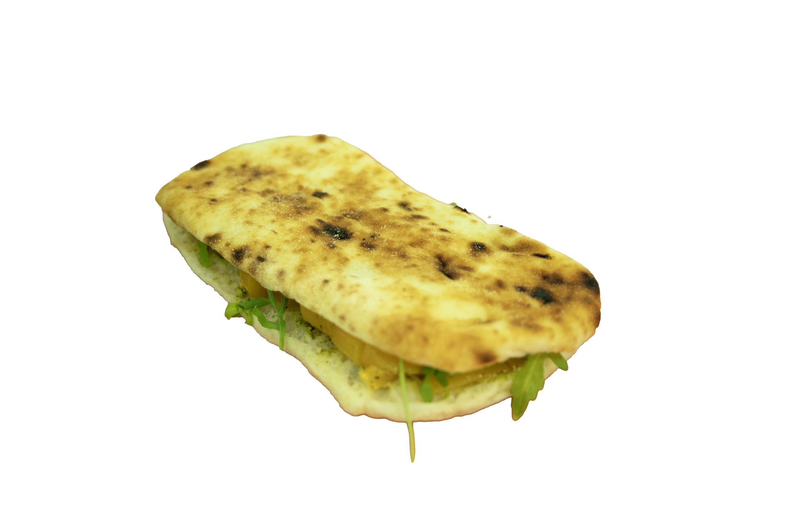 Panuozzo avec coppa + pesto + stracciatella + tomates cerises + roquette